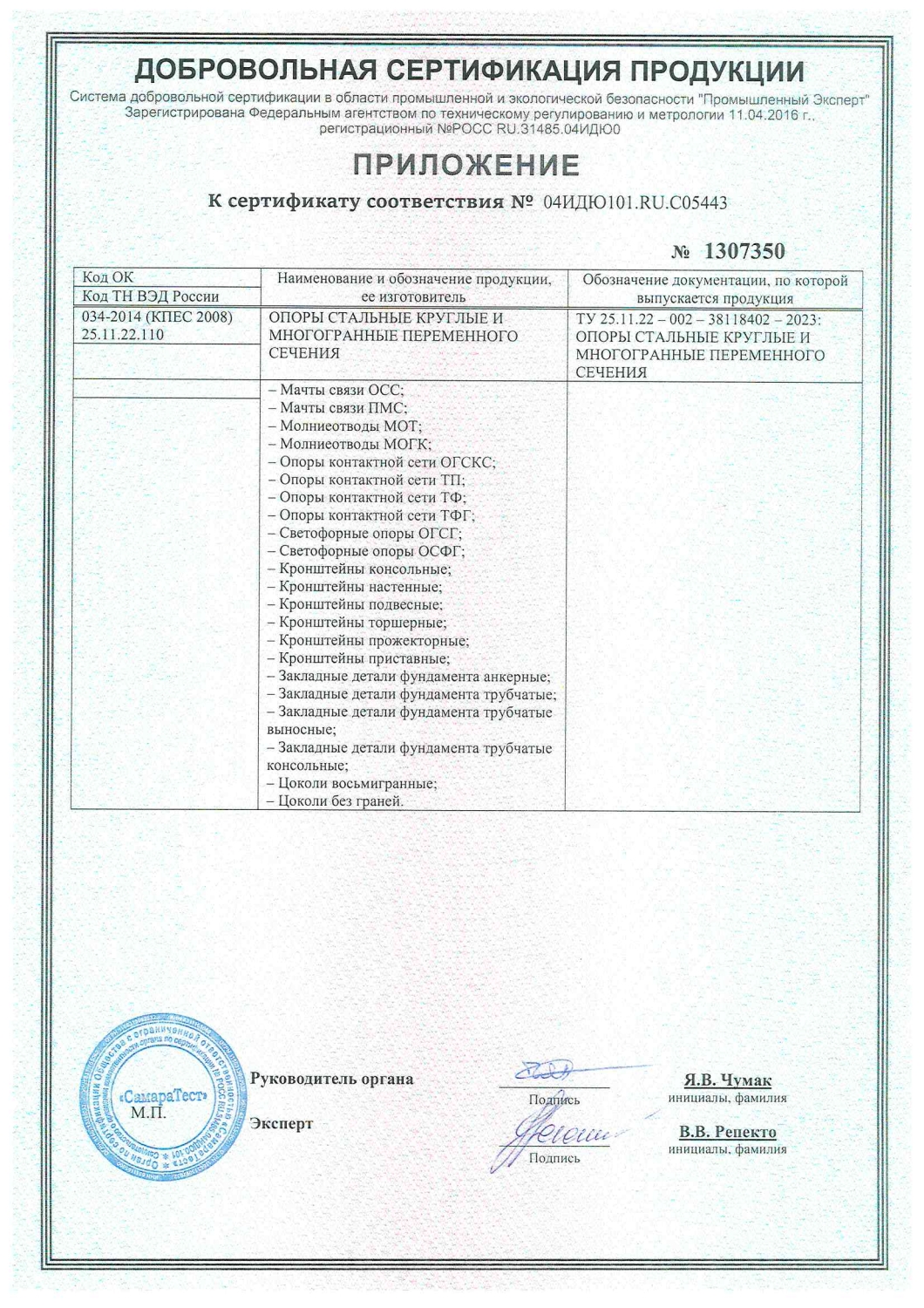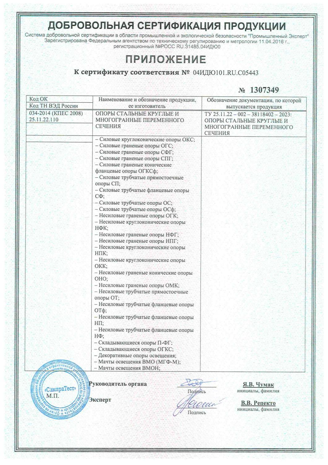 Приложение к сертификату соответствия