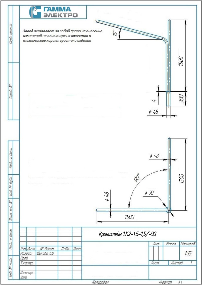Кронштейн 1.К2-1,5-1,5/90-Ф2-ц