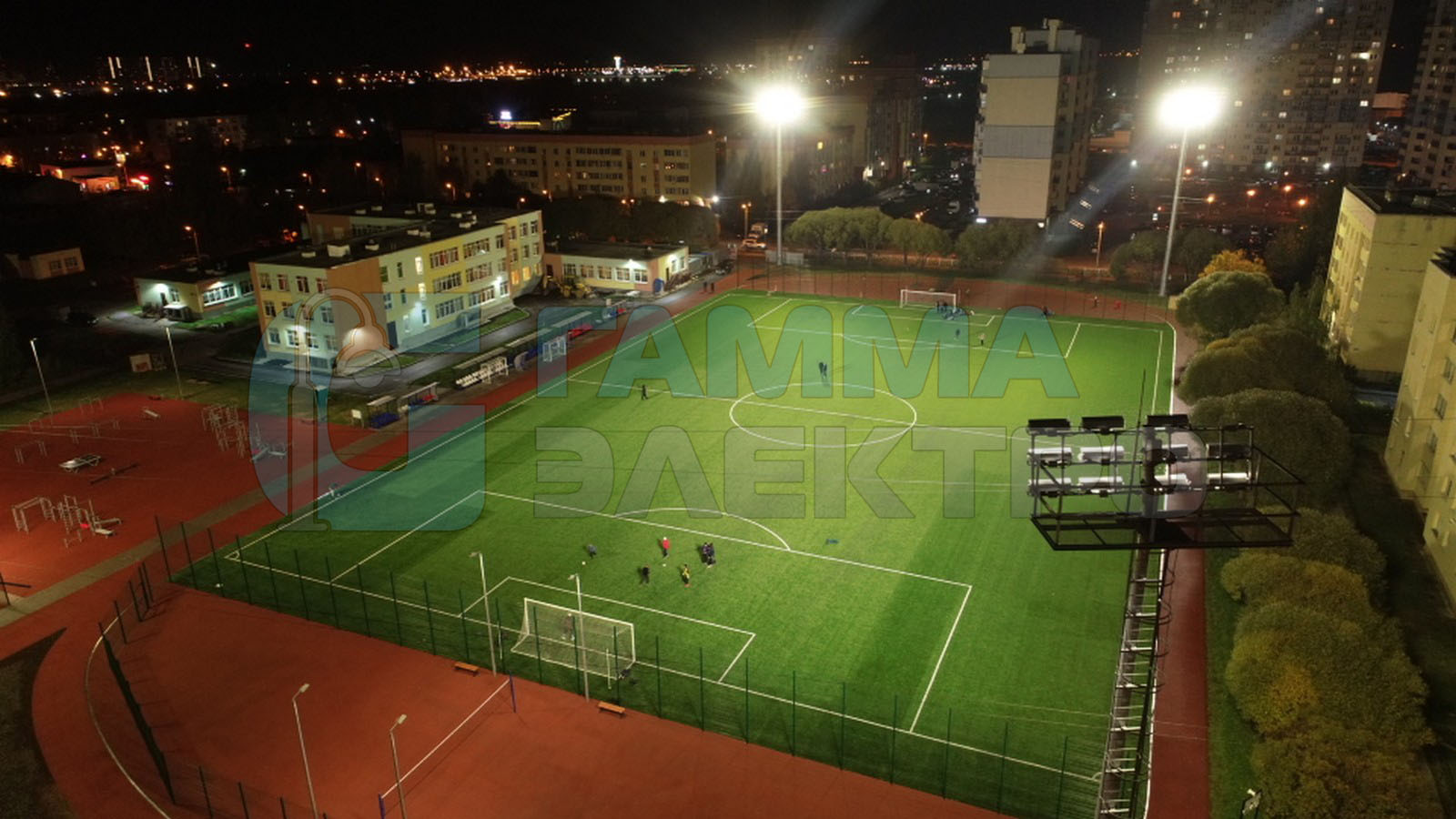 Посёлок Бугры, Ленинградская область, освещение спортплощадки (футбольное поле)