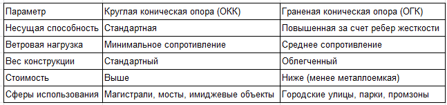 Круглые или граненые опоры: сравнительная таблица характеристик