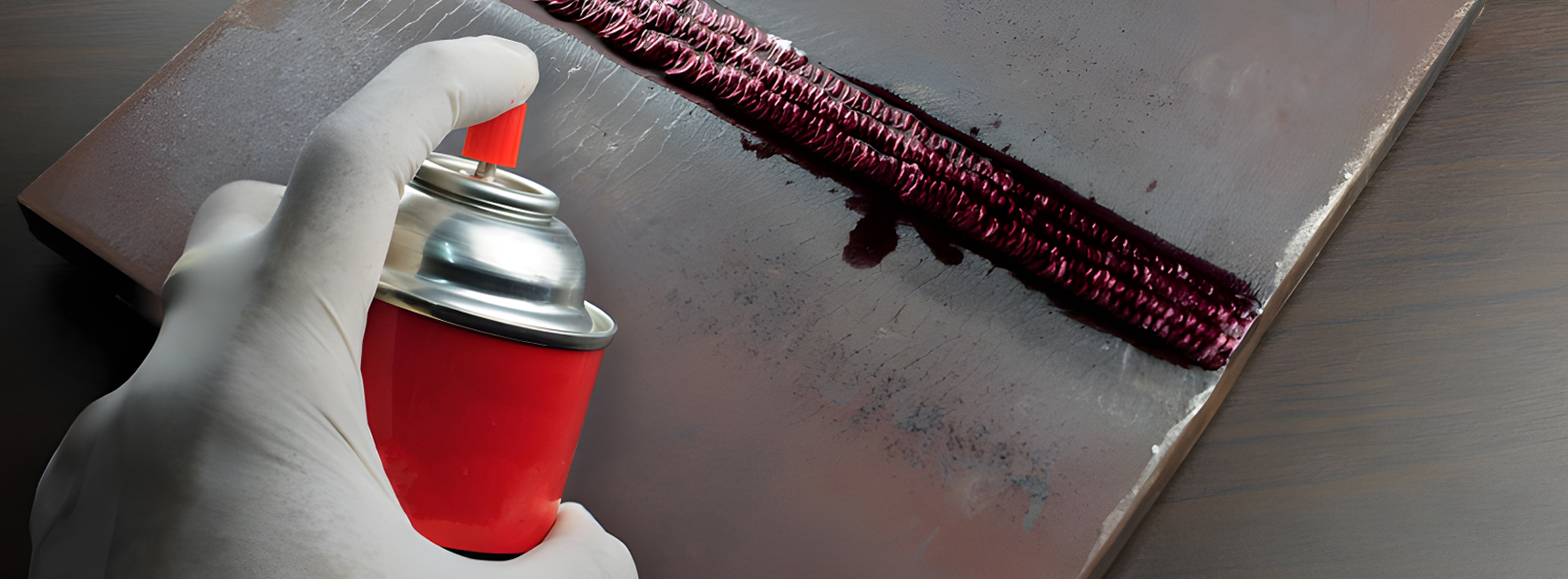 Составы, используемые при испытаниях, называют пенетрантами. Жидкости не только проникают в шов, но и окрашивают дефектные места. Это упрощает контроль качества, позволяет визуально определить участки, заслуживающие внимания.