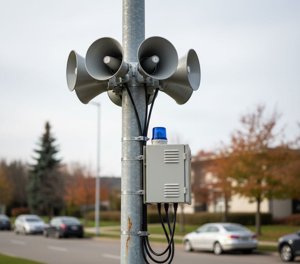 Опоры — лучшее место для размещения громкоговорителей. Их высота способствует эффективному распространению сигнала, а также снижает риск повреждения оборудования третьими лицами. В большинстве случаев системы устанавливают на специальных площадках, притягиваемых хомутами. Однако возможно размещение устройств на траверсах, например, рядом с камерами.