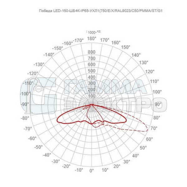 Светильник светодиодный GALAD Победа LED-150-ШБ4К-IP65-УХЛ1(750/E/X/RAL9023/C50/PMMA/ST/G1)