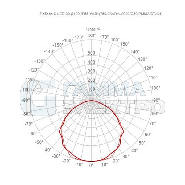 Светильник светодиодный GALAD Победа S LED-80-Д120-IP65-УХЛ1(750/E/X/RAL9023/C50/PMMA/ST/G1)