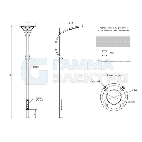 Производитель Гамма-Электро Наименование опоры Парус Высота опоры (м) 4.2 Масса опоры, кг 56,0 Способ установки Фланцевая Назначение опоры Несиловая Вид покрытия (Ц) Горячее цинкование