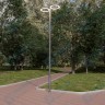 Уличная светодиодная система освещения «Рондо» RON 1/2 представляет собой интересное дизайнерское решение, отлично вписывающееся в архитектурный ансамбль городских общественных пространств, мест отдыха, парковых и придомовых территорий. В данной модификации осветительная система имеет два светильника и базируется на стальной цилиндрической опоре высотой от 4 до 6 метров. Каждый светильник имеет мощность 36Вт (в сумме 72Вт), цветопередача на выбор заказчика. Изделие закрепляется к закладной детали фундамента с помощью фланцевого соединения, защищено от агрессивных воздействий окружающей среды горячеоцинкованным покрытием, порошковая покраска в любой цвет палитры RAL по желанию заказчика. В основании опоры находится технологический лючок. Закладные детали, декоративный фланец и монтажные аксессуары заказываются отдельно.