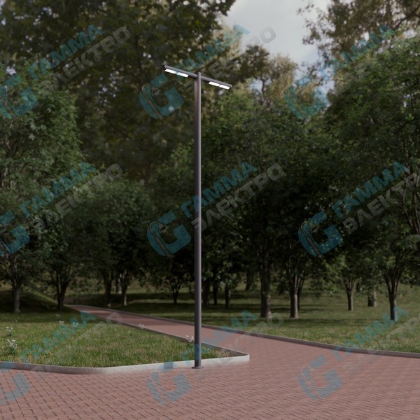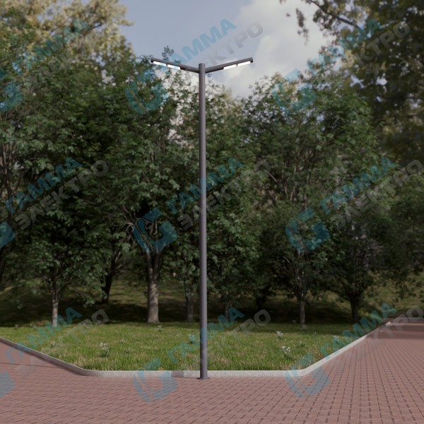 Уличная светодиодная система освещения «Тверь Гала» - удачное сочетание простоты дизайна и функциональности. Универсальная форма опоры подходит для организации освещения современных скверов, прогулочных зон, придомовых пространств, парковок и набережных. Данная модификация выполнена в исполнении с двумя светильниками, расположенными на одном уровне под углом 180° относительно друг друга на высоте 5 метров. Также возможно исполнение светильников под углом 15° к горизонту. Каждый светильник имеет увеличенную мощность 52Вт, цветопередача на выбор заказчика. Опора изготовлена из стальной трубы диаметром 108мм. Изделие крепится к закладной детали фундамента с помощью фланцевого соединения, защищено от агрессивных воздействий окружающей среды горячеоцинкованным покрытием, может быть дополнительно окрашена по желанию заказчика. В основании опоры находится технологический лючок. Закладные детали, декоративный фланец и монтажные аксессуары заказываются отдельно.