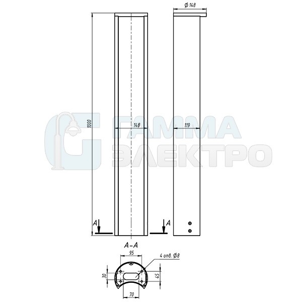- Высота 1,0 метр, мощность светильника 10Вт.